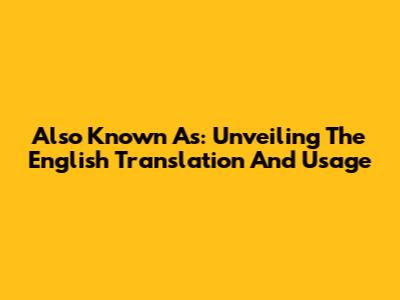 Also Known As: Unveiling The English Translation And Usage