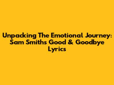 Unpacking The Emotional Journey: Sam Smith's 'Good & Goodbye' Lyrics