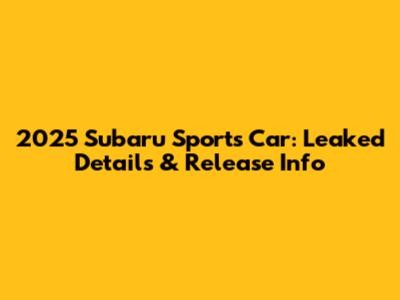 2025 Subaru Sports Car: Leaked Details & Release Info