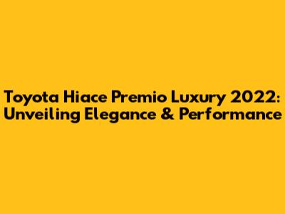 Toyota Hiace Premio Luxury 2022: Unveiling Elegance & Performance